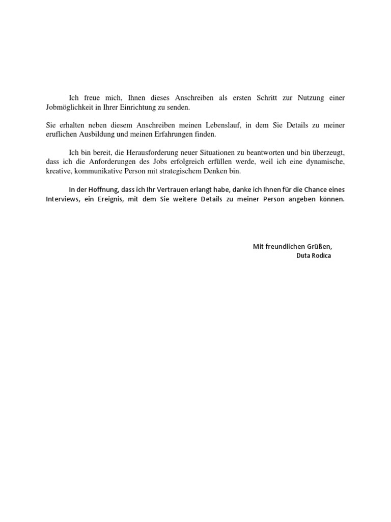 Modele de scrisoare de intentie student. In plus un model CV in germana are de obicei atasat o poza a candidatului in coltul din dreapta sus al paginii. Referitor la formulele de adresare in cazul in care nu cunoasteti destinatarul scrieti Sehr geehrte Damen und Herren.
