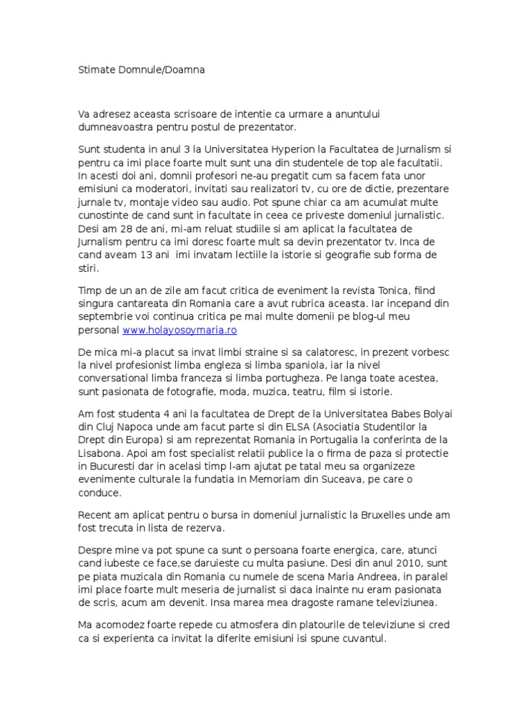 Scrisoare De Intentie Jurnalist Pdf