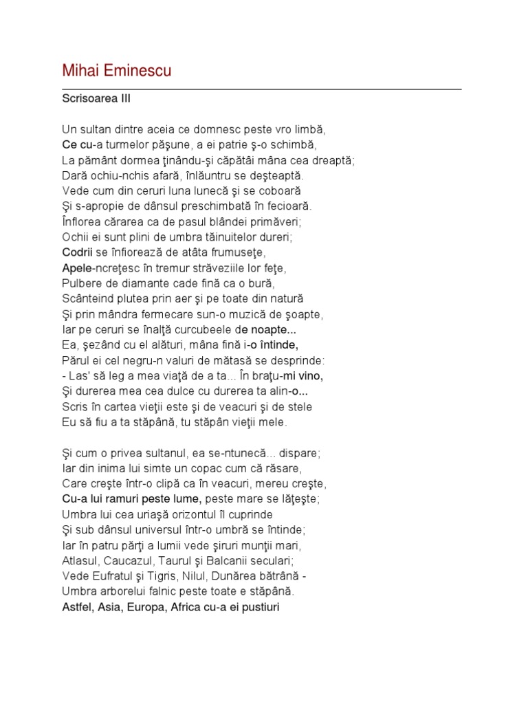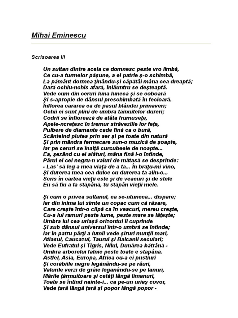 Scrisoarea I de Mihai Eminescu - Referat. Vede cum din ceruri luna luneca si se coboara. Fișă de lectură Scrisoarea III de Mihai Eminescu.