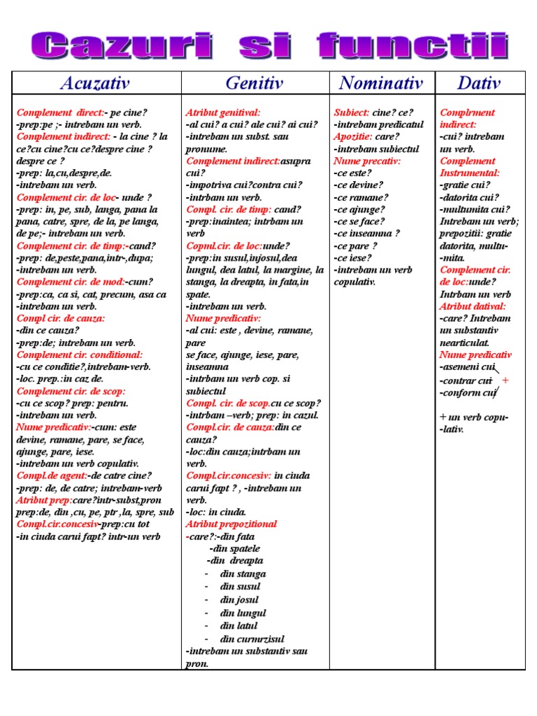 Vreau Intrebari Cazurilor : Nominativ, Acuzativ, Genitiv, Dativ